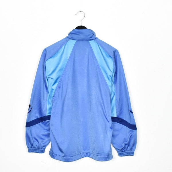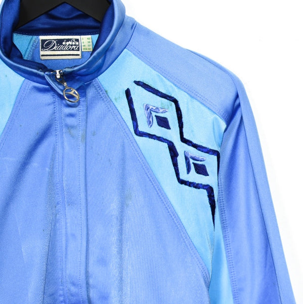 Vintage Diadora windbreaker fleece track jacket bomber jacket in light blue. Unisex. Same/Next day postage, instant buy is on! Good condition. Faults are shown: has some stains on the front. Has a logo on the zipper. Label says M, we recommend L.