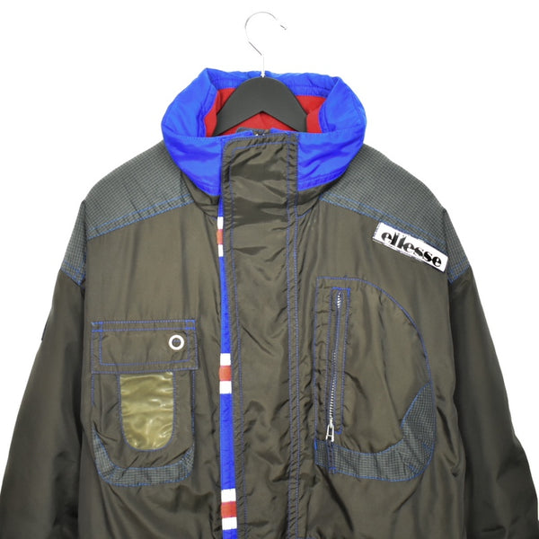 Vintage Ellesse long puffer zip up jacket coat windbreaker tracksuit track jacket trackie sweater jumper sweatshirt pullover long sleeve in dark green and blue