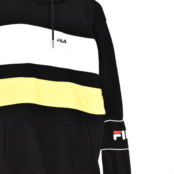 Vintage Fila hoodie pullover sweatshirt top jumper in black white and yellow. Unisex. Same/Next day postage, instant buy is on! Great condition. Has a cool logo on the front and back. Label says L, we recommend XL.