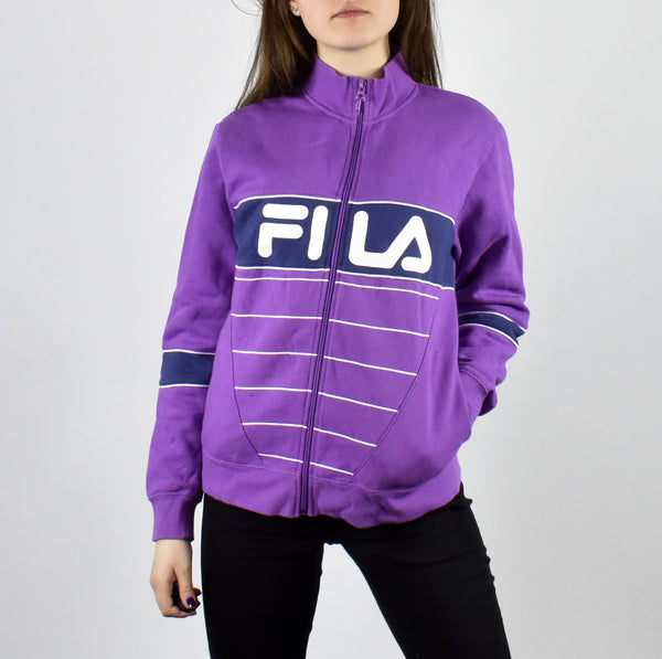 Vintage Fila tracksuit track jacket fleece windbreaker in purple. Unisex. Same/Next day postage, instant buy is on! Very good condition. Features a logo on the front. Size S best fitting. Model is 162cm/5ft4. Please message with any questions 👌