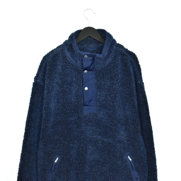 Vintage fuzzy zipneck outerwear sweatshirt jumper sweater pullover hoodie in dark blue. Unisex. Same/Next day postage, instant buy is on! Pretty good condition. Faults are shown in the picture: has a missing button. We recommend XL.