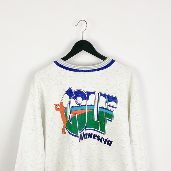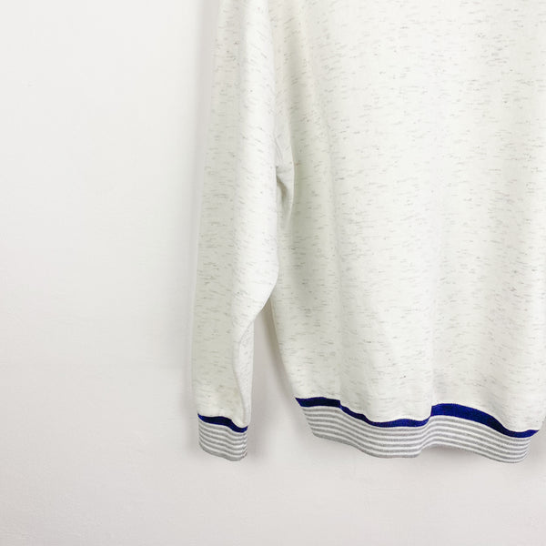 Vintage Grand illusion sportswear jumper longsleeve tee pullover sweatshirt in grey. Unisex. Same/Next day postage, instant buy is on! Good condition apart from the stain showed in the picture. Has a logo on the front. Label says XL, we recommend XL.