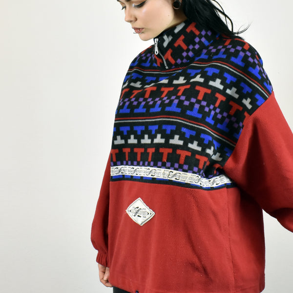 Vintage half zip fleece pullover sweatshirt in red and black. Unisex. Same/Next day postage, instant buy is on! Great condition. Size M best fitting. Model is 165cm/5ft5. Please message with any questions 👌