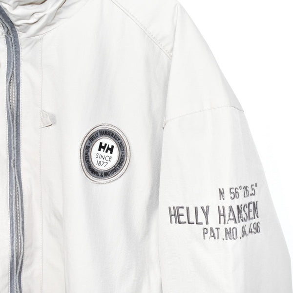 Vintage Helly Hansen bomber jacket track fleece longsleeve tee pullover windbreaker sweatshirt in beige. Unisex. Same/Next day postage, instant buy is on! Good condition. Faults can be seen: some stains on the front and sleeves. Has a logo on the front and sleeve. Label says XL, we recommend XL.