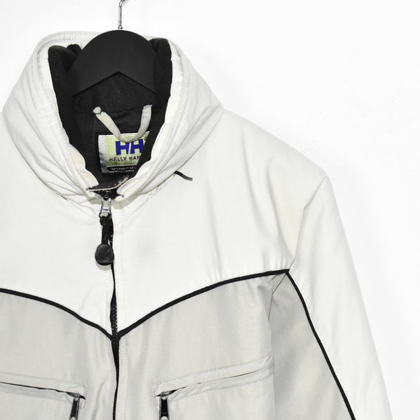 Vintage Helly Hansen jacket bomber zip up track jacket windbreaker sweatshirt longsleeve tee pullover jumper in milky white/grey. Unisex. Same/Next day postage, instant buy is on! Great condition. Has a logo on the front. Label says M, recommend M.