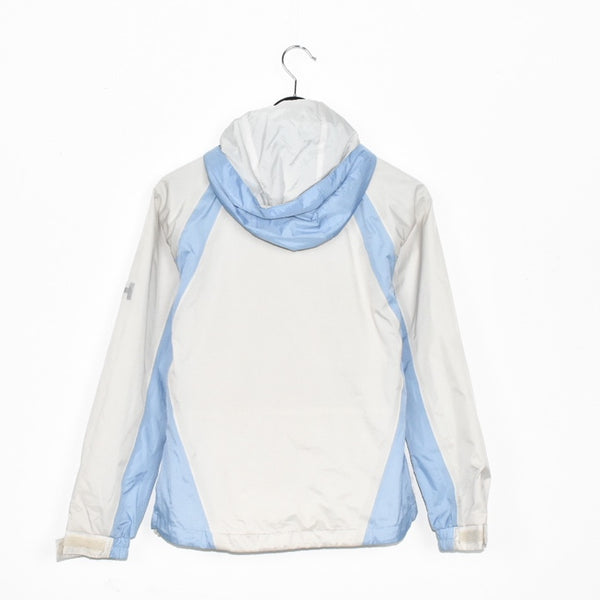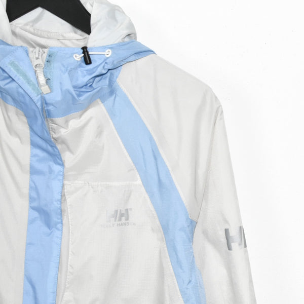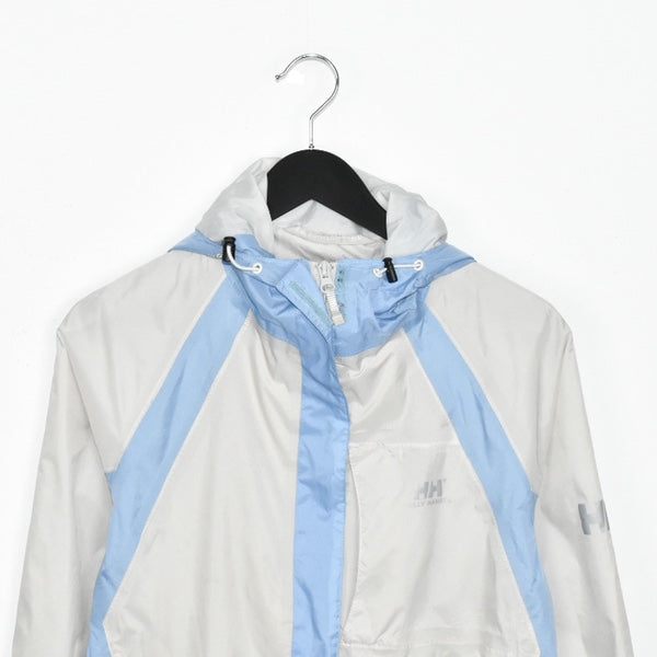 Vintage Helly Hansen zip up track jacket windbreaker sweatshirt longsleeve tee pullover jumper in white and light blue. Unisex. Same/Next day postage, instant buy is on! Great condition. Has a logo on the front. Label says XS, we recommend XS/S.