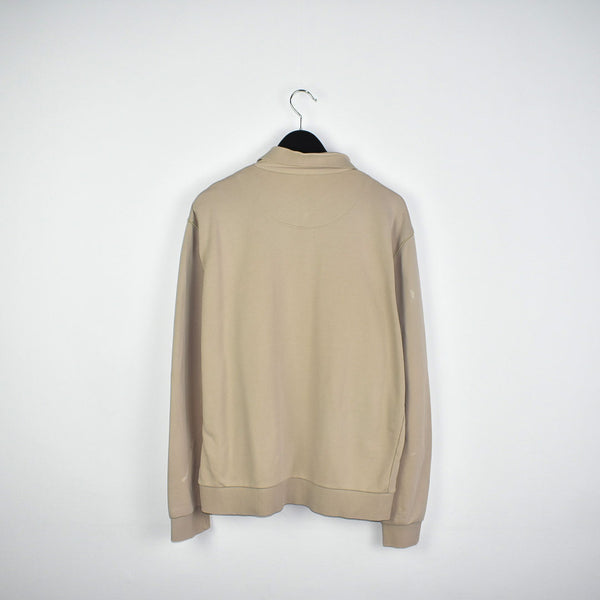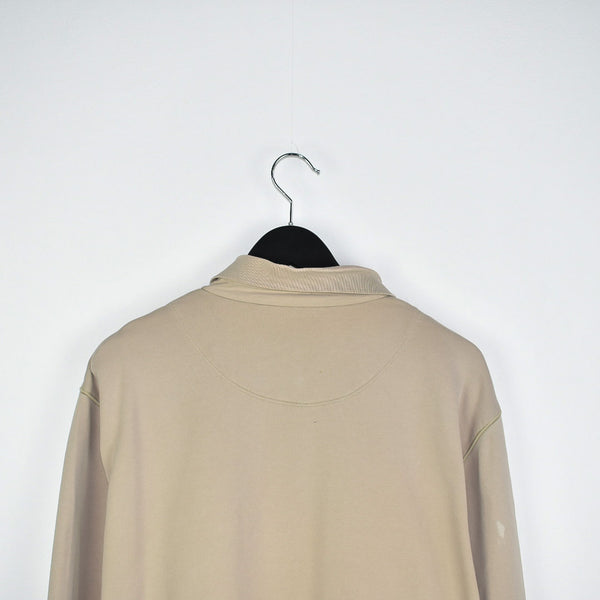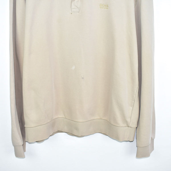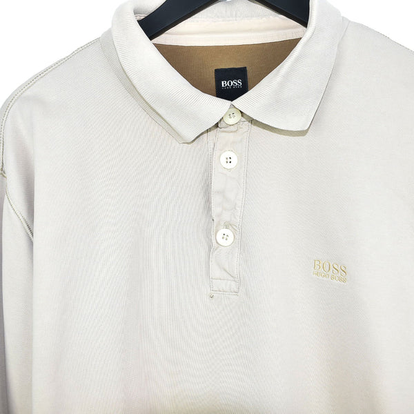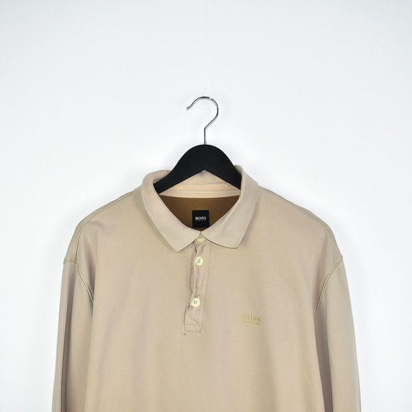 Vintage Hugo Boss formal shirt long sleeve polo shirt t-shirt top in beige. Unisex piece. Same/Next day postage, instant buy is on! Good condition. Faults are shown in the picture: small stains on the front. Has a logo on the front. Tag says L, we recommend L. Measurements: *Pit to pit - 21in/54cm *Top to bottom - 24in/63cm *Pit to cuff - 18in/46cm Please message with any questions BD7