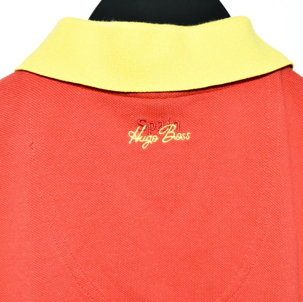 Vintage Hugo Boss Spain polo shirt t-shirt pullover in red. Unisex. Same/Next day postage, instant buy is on! Very good condition. Features a logo on the front and back. We recommend XS.