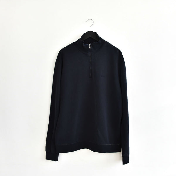 Vintage Hugo Boss zip up crewneck jacket fleece pullover sweatshirt windbreaker track jacket jumper in dark blue. Unisex. Same/Next day postage, instant buy is on! Very good condition. Has a spell out logo on the front. Label says XL, we recommend XL.