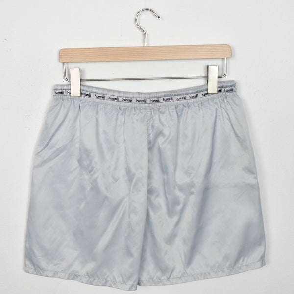 Vintage Hummel shorts trousers joggers bottoms pants in shiny/reflective grey/silver. Unisex. Same/Next day postage, instant buy is on! Very good condition. Label says XL, we recommend M.
