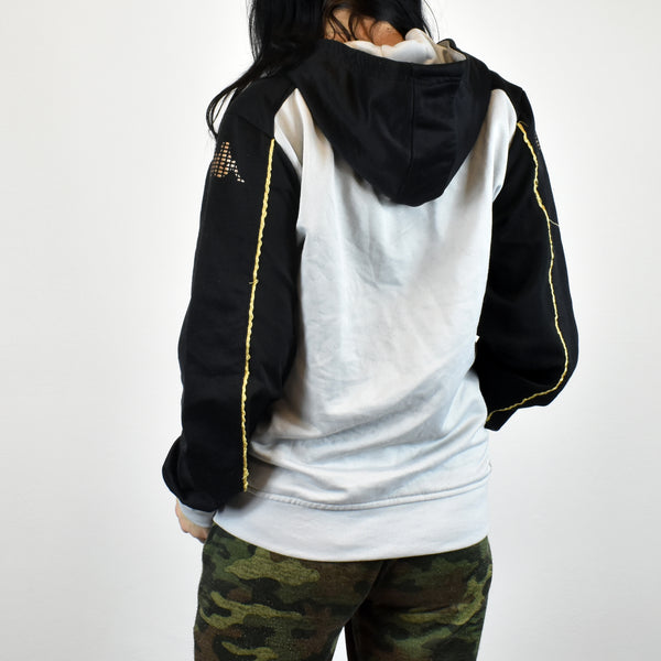 Vintage Kappa hoodie sweatshirt jumper pullover in white and black. Unisex. Same/Next day UK postage, instant buy is on! Very good condition. Size M best fitting. Model is 165cm/5ft5. 100% polyester