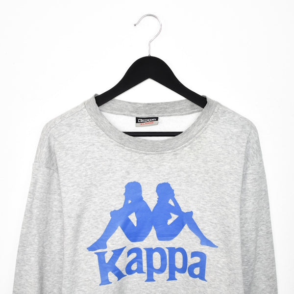 Vintage Kappa long sleeve sweatshirt jumper hoodie t-shirt top blouse tee in grey and blue. Unisex. Same/Next day postage, instant buy is on! Very good condition. Has a blue spell out Kappa logo on the front. Label says XL, we recommend L/XL.