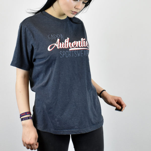 Vintage Kappa t-shirt top blouse tee in navy blue. Unisex. Same/Next day postage, instant buy is on! Great condition. Size S best fitting. Model is 165cm/5ft5. Please message with any questions 👌
