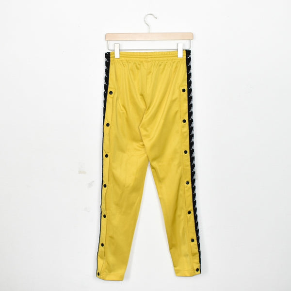 Vintage Kappa track pants trousers joggers bottoms pants in yellow. Unisex. Same/Next day postage, instant buy is on! Great condition. Has a logo on the front, tapering and open slit/buttons. Label says S, we recommend S.
