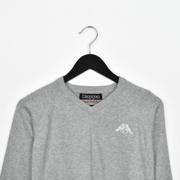 Vintage Kappa V-neck jumper jumper longsleeve tee pullover sweatshirt in grey. Unisex. Same/Next day postage, instant buy is on! Great condition. Has a logo on the front. Label says L, we recommend M.
