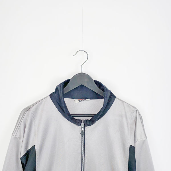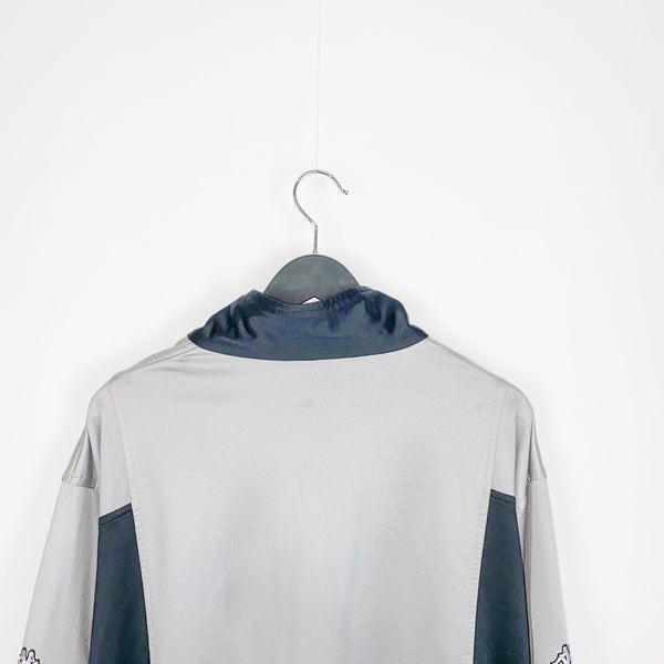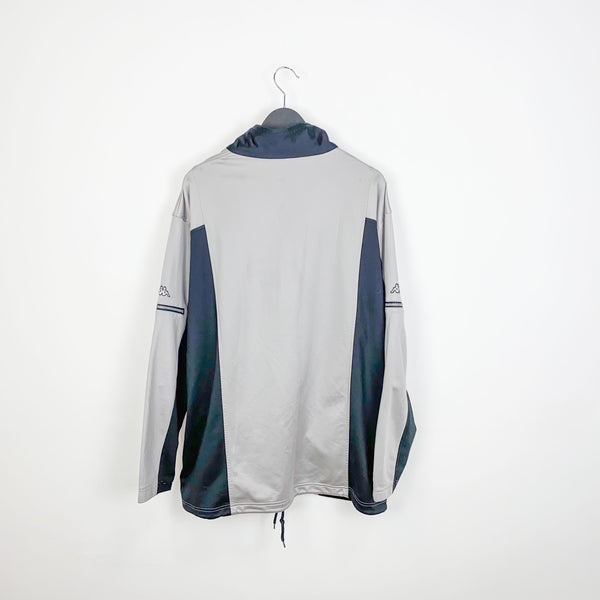 Vintage Kappa zip up jacket tracksuit trackie sweater windbreaker in light and dark grey. Unisex. Same/Next day UK postage, instant buy is on! Good conditions apart from ripped seam on the sleeve. Features an embroidered Kappa logo on the sleeves. Label says XL, we recommend XL.
