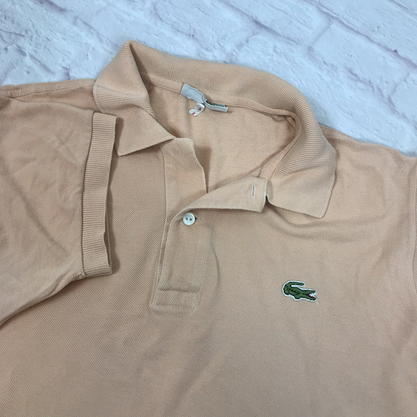 Vintage Lacoste polo shirt t-shirt pullover in pink. Unisex. Same/Next day postage, instant buy is on! Good condition apart from a missing button and a small rip on the right sleeve. Features a small logo on the front. Size M/L best fitting. Model is 181cm/5ft11. Please message with any questions 👌
