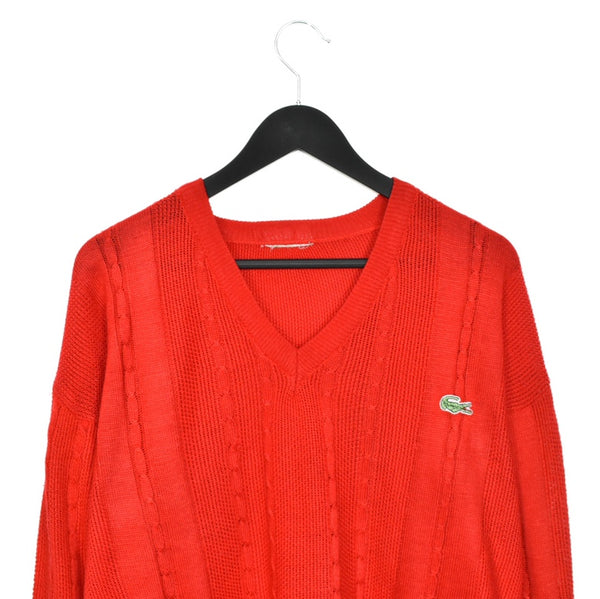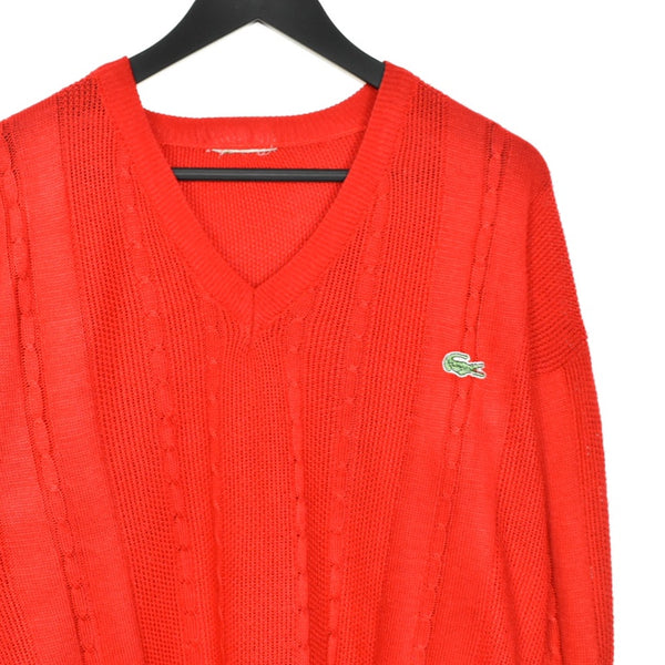 Vintage Lacoste V neck knir sweater thin material longsleeve tee pullover sweatshirt in red. Unisex. Same/Next day postage, instant buy is on! Great condition. Has a logo on the front. We recommend L.