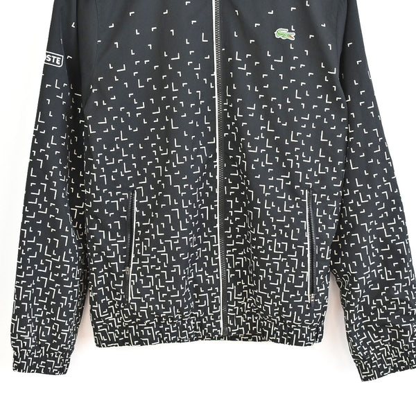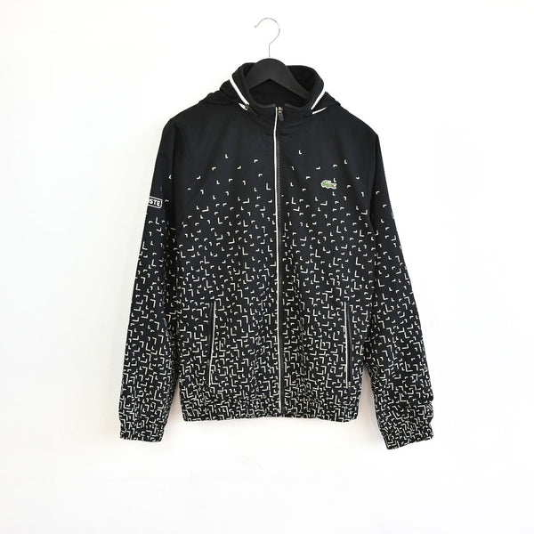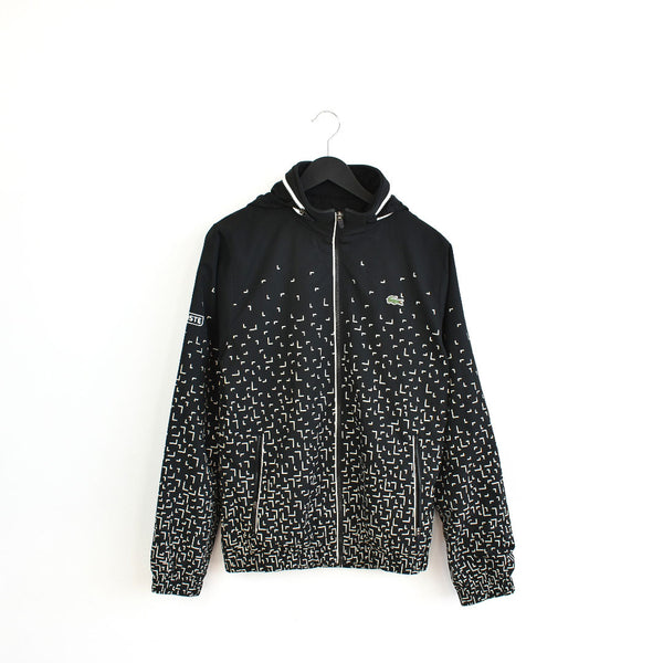Vintage Lacoste windbreaker tracksuit trackie jacket zip up jumper pullover in black. Unisex. Same/Next day UK postage, instant buy is on! Very good condition. Features a Lacoste logo on the front and has a super cool print. Label says M, we recommend M. Measurement: * Pit to pit - 17in/43cm * Top to bottom - 26in/65cm * Pit to cuff - 20in/52cm Please message with any questions BE11
