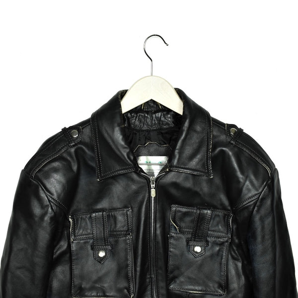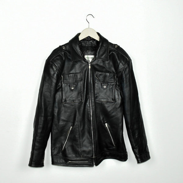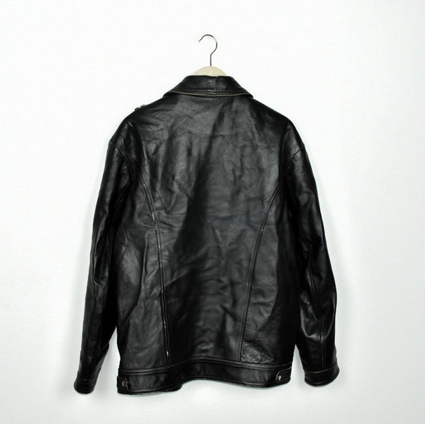 Vintage leather jacket windbreaker fleece track jacket bomber jacket in black. 100% cattle leather. Unisex. Same/Next day postage, instant buy is on! Very good condition. We recommend L.