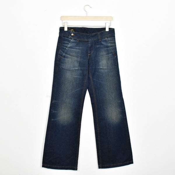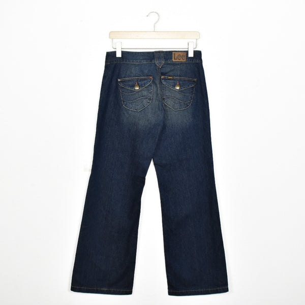 Vintage Lee jeans track pants bottoms pants trousers in dark blue. Unisex. Same/Next day postage, instant buy is on! Has a Lee button detail. Great condition. We recommend M.