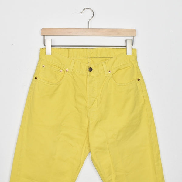 Vintage Levis jeans pants bottoms trousers joggers in bright yello. Unisex. Same/Next day postage, instant buy is on! Pretty great condition. Has a small stain on the right leg. We recommend S/M.