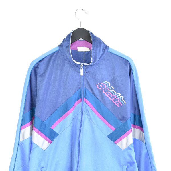 Vintage Lotto tracksuit trackie jacket windbreaker jumper zip up sweater in blue, purple and white. Unisex. Same/Next day UK postage, instant buy is on! Very good condition. Features a lotto logo on the front. Label says L, we recommend L. Measurement: * Pit to pit - 22in/56cm * Top to bottom - 25in/65cm * Pit to cuff - 19in/48cm Please message with any questions AR7