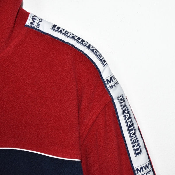 Vintage Man’s world Sport quarter zip up fleece jumper longsleeve tee pullover sweatshirt in dark blue and red. Unisex. Same/Next day postage, instant buy is on! Great condition. Has a logo on the sleeves and zipper. We recommend L.