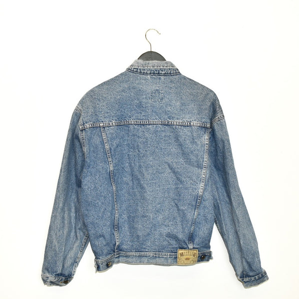 Vintage Mustang denim jacket coat bomber jacket in blue. Unisex. Same/Next day postage, instant buy is on! Good condition. Faults are shown in the picture: a stain on the front. Label says L, we recommend S.