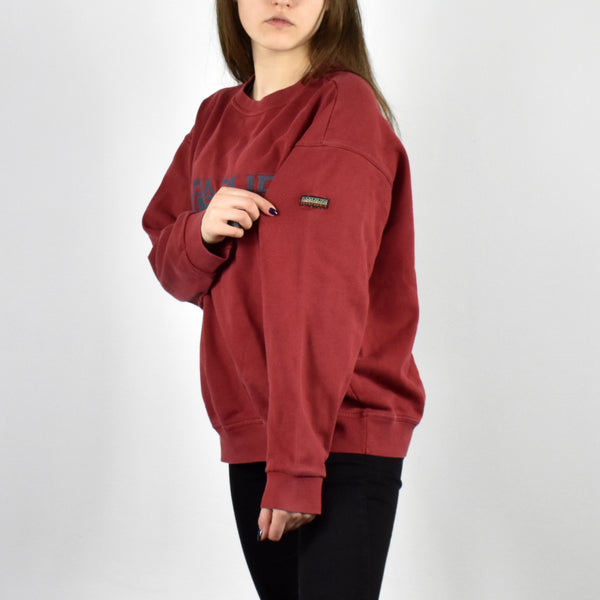 Vintage Napapijri sweatshirt jumper sweater pullover hoodie in red. Unisex. Same/Next day postage, instant buy is on! Very good condition apart from some minor print wear. Has a logo on the front. Size M best fitting. Model is 162cm/5ft4. Please message with any questions 👌