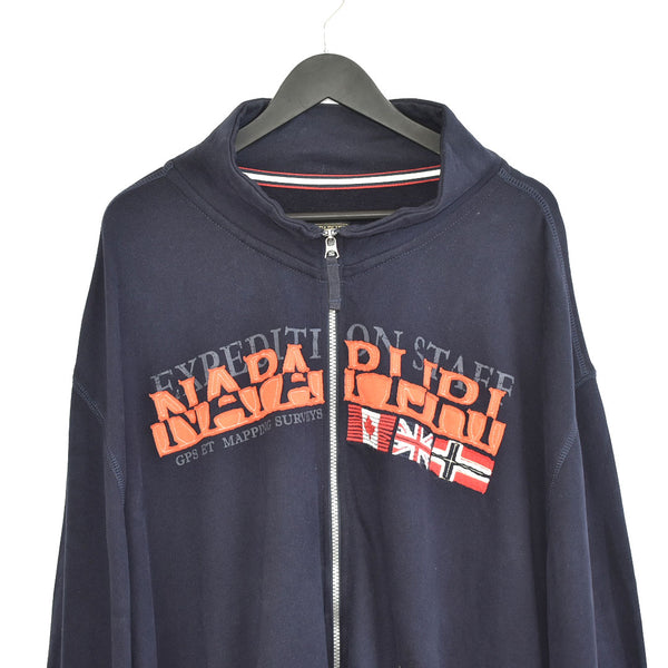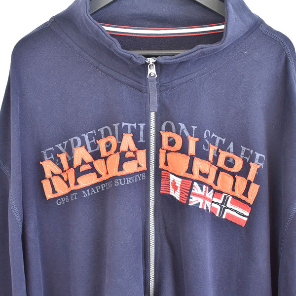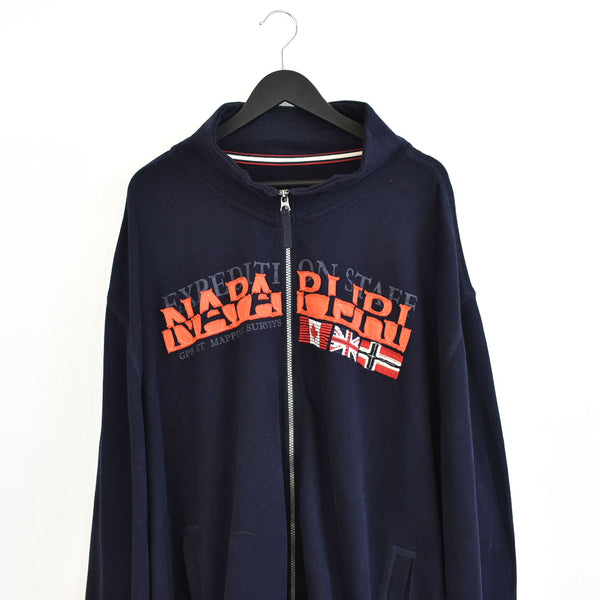 Vintage Napapirji zip up jumper long sleeve sweatshirt jacket bomber jacket trackie in dark blue and orange. Unisex. Same/Next day postage, instant buy is on! Has a logo on the front. Great condition. Label says XXL, we recommend XXL. Measurements: * Pit to pit - 27in/69cm * Top to bottom - 31in/78cm * Pit to cuff - 18in/47cm Please message with any questions BE3