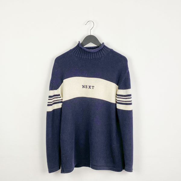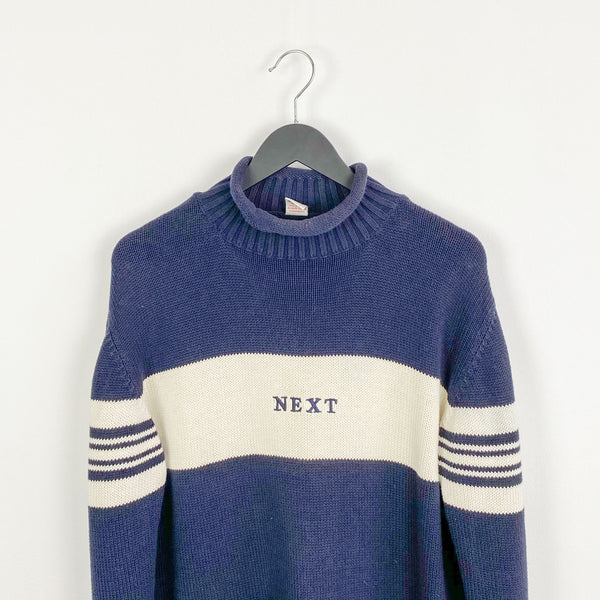 Vintage Next sweatshirt longsleeve tee pullover jumper in dark blue with white stripes. Unisex. Same/Next day postage, instant buy is on! Great condition. Has a logo on the front. Label says M, we recommend M.