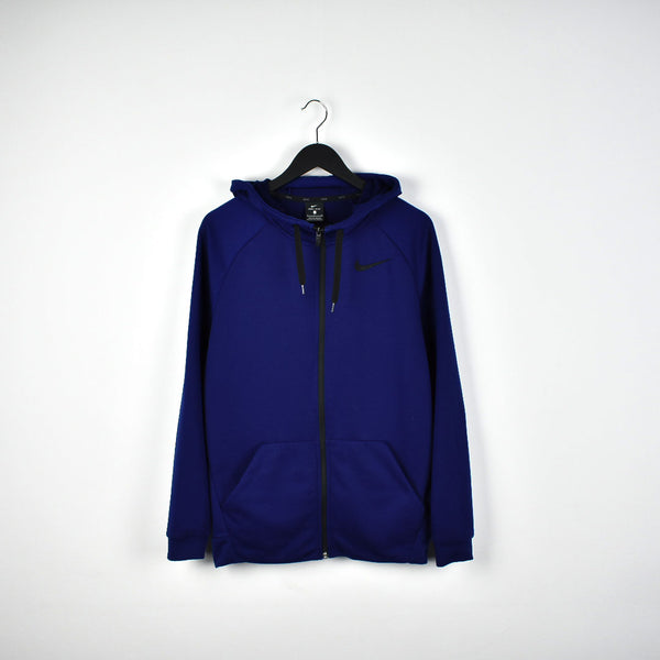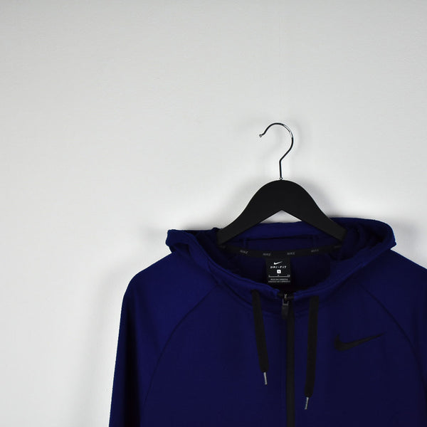 Vintage Nike hoodie zip up jacket long sleeve sweatshirt jumper in dark blue. Unisex. Same/Next day postage, instant buy is on! Has a big logo on the front. Great condition. Label says S, we recommend M. Measurements: * Pit to pit - 18in/47cm * Top to bottom - 23in/60cm * Pit to cuff - 18in/46cm Please message with any questions AZ11