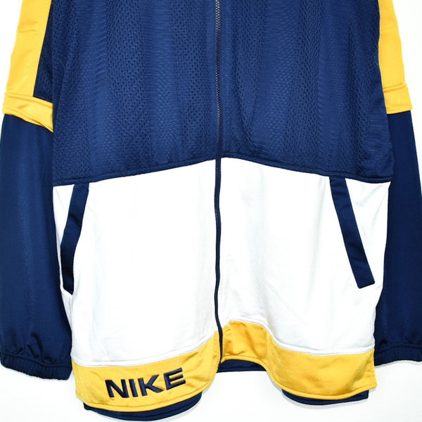 Vintage Nike jacket track windbreaker coat pullover bomber jacket trench coat in blue, white and yellow. Unisex. Same/Next day postage, instant buy is on! Very good condition. Has a spell out logo on the front back.. We recommend XL.