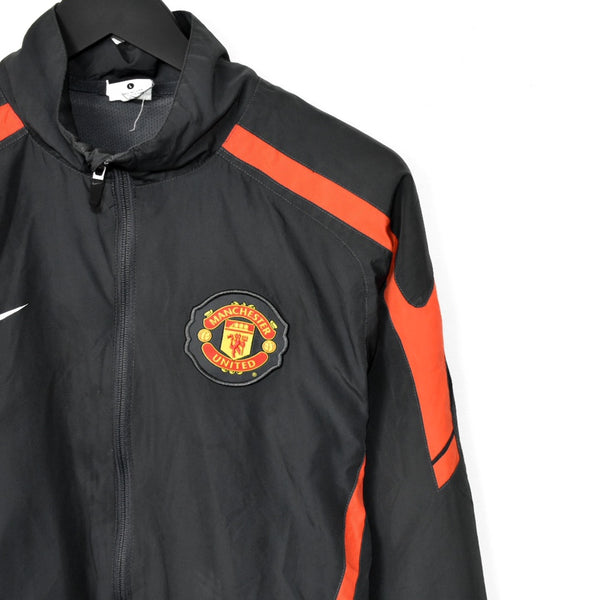 Vintage Nike Manchester United zip up tracksuit track jacket trackie sweater windbreaker jumper sweatshirt pullover long sleeve in dark grey and red. Unisex. Same/Next day UK postage, instant buy is on! Great condition. Features Nike logo on the front. Label says L, we recommend L.