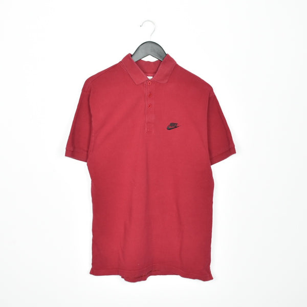 Vintage Nike polo shirt t-shirt pullover in red/maroonish. Unisex. Same/Next day postage, instant buy is on! Good condition. Faults are shown in the picture: white stains on the vack. Features a small logo on the front. Label says S, we recommend L.