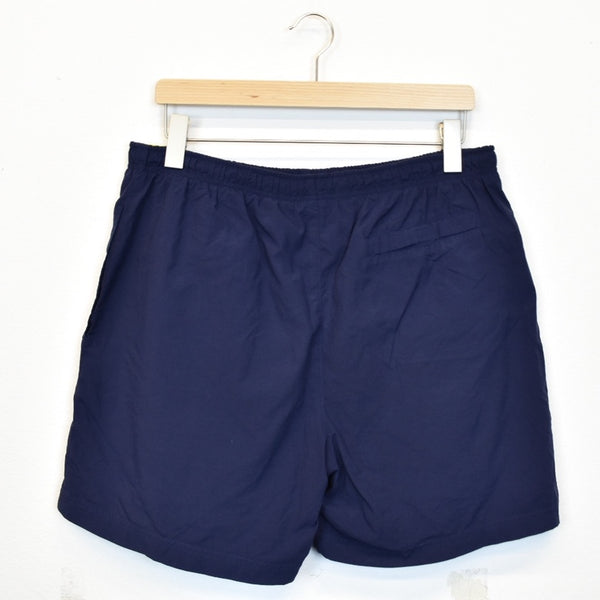Vintage Nike shorts joggers trousers track pants bottoms in navy and yellow. Unisex. Same/Next day postage, instant buy is on! Good condition. Has a few small holes and spots. Has a spell out logo on the front. Label says M, we recommend M.