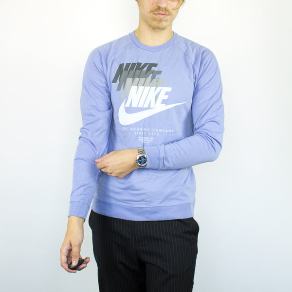 Vintage Nike sweatshirt jumper sweater pullover hoodie in blue. Unisex. Same/Next day postage, instant buy is on! Great condition. Has a logo on the front. Size L best fitting. Model is 181cm/5ft11. Please message with any questions 👌