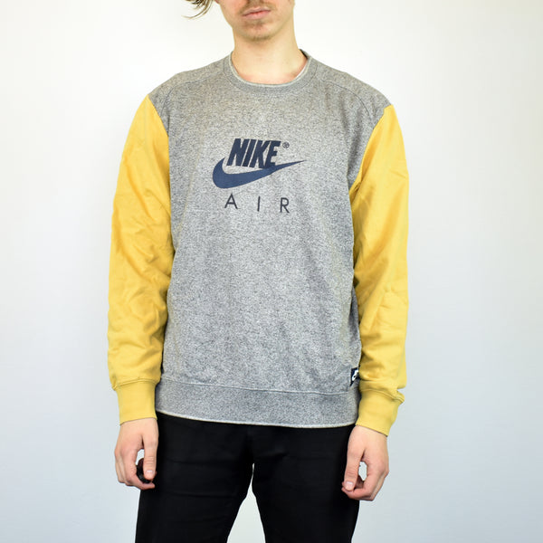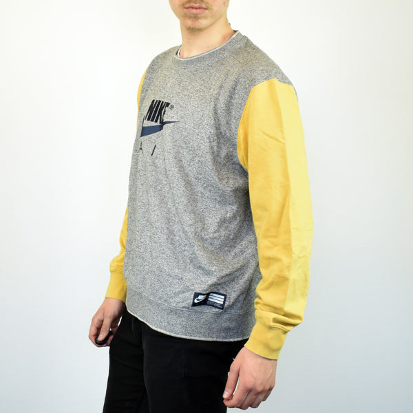 Vintage Nike sweatshirt jumper sweater pullover hoodie in gray and yellow. Unisex. Same/Next day postage, instant buy is on! Very good condition. Has a logo on the front. Size M best fitting. Model is 181cm/5ft11. Please message with any questions 👌