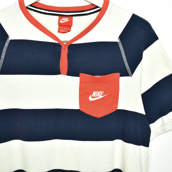 Vintage Nike t-shirt top blouse tee in white dark blue and red. Unisex. Same/Next day postage, instant buy is on! Very good condition. Has a logo on the front. Label says L, we recommend L.