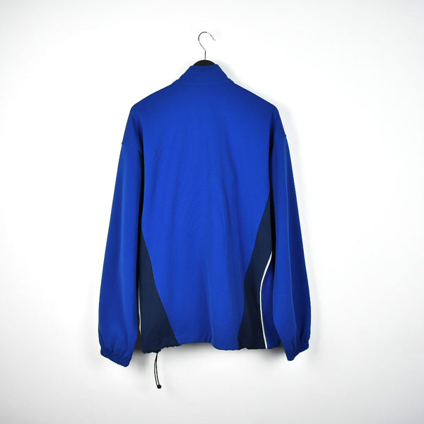 Vintage Nike windbreaker fleece track zip up jacket bomber in blue and black with white stripes. Unisex. Same/Next day postage, instant buy is on! Very good condition. Has a logo on the front. Label says L, we recommend L. Measurements: * Pit to pit - 20in/52cm * Top to bottom - 27in/70cm * Pit to cuff - 16in/42cm Please message with any questions AZ15