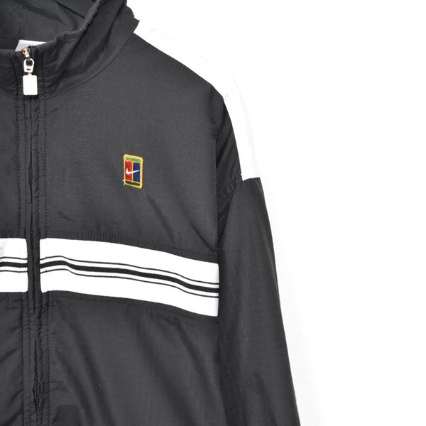 Vintage Nike zip up tracksuit track jacket trackie sweater windbreaker jumper sweatshirt pullover long sleeve in black and white. Unisex. Same/Next day UK postage, instant buy is on! Great condition. Features Nike logo on the front. Label says L, we recommend L.