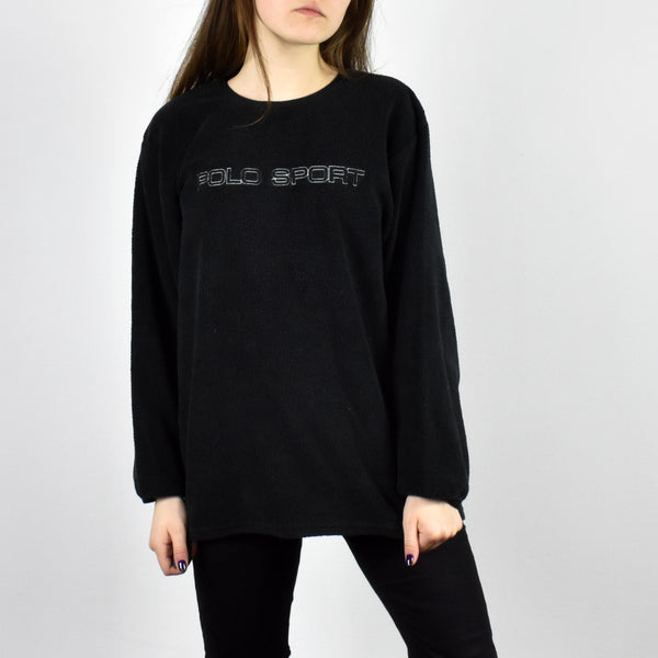 Vintage Polo Sport soft material sweatshirt jumper sweater pullover hoodie in black. Unisex. Same/Next day postage, instant buy is on! Very good condition. Features hue polo sport logo, insane piece. Size S best fitting. Model is 162cm/5ft4. Please message with any questions 👌