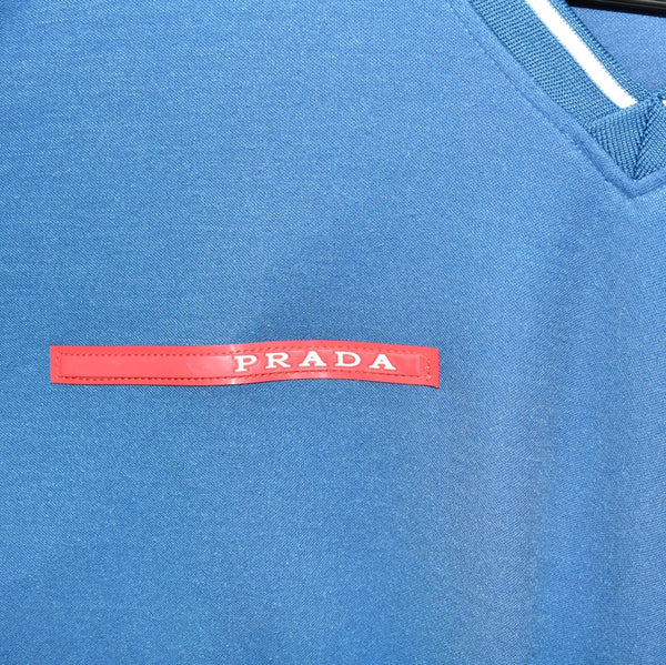 Vintage Prada V-neck t-shirt top blouse tee in navy red and white. Unisex. Same/Next day postage, instant buy is on! Very good condition. Has a logo on the front. Label says XXL, we recommend XXL.