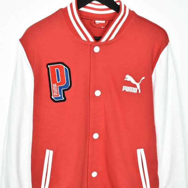 Vintage Puma bomber jacket fleece windbreaker in red and white. Unisex. Same/Next day postage, instant buy is on! Has a logo on the front and back. Very good condition. Tag says L, we recommend L.