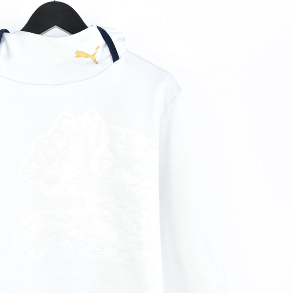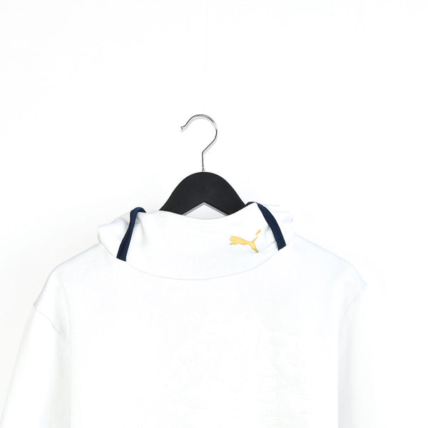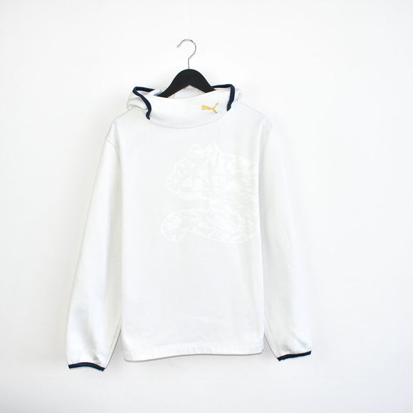 Vintage Puma hoodie long sleeve sweatshirt tracksuit track jacket windbreaker fleece jumper in white and black. Unisex. Same/Next day postage, instant buy is on! Has a logo and a super cool print on the front. Great condition. Label says L, we recommend L. Measurements: * Pit to pit - 22in/58cm * Top to bottom - 18in/48cm * Pit to cuff - 17in/45cm Please message with any questions MM10