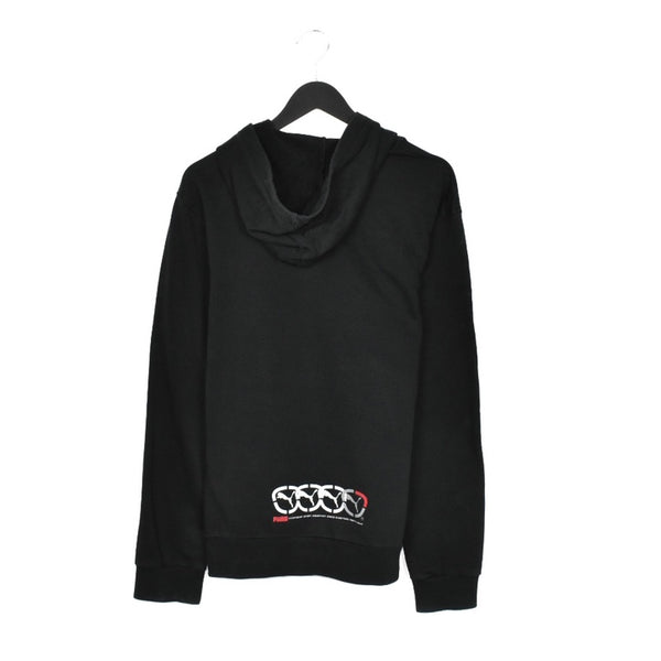 Vintage Puma hoodie pullover sweatshirt windbreaker fleece track jacket in black and red. Unisex. Same/Next day postage, instant buy is on! Very good condition. Has a logo and pockets on the front. Label says L, we recommend L.