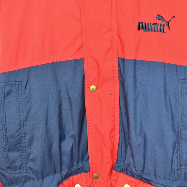Vintage Puma puffer jacket windbreaker fleece track jacket bomber jacket in red and blue. 100% polyester. Unisex. Same/Next day postage, instant buy is on! Pretty good condition. Faults are shown in the picture: a small stain on the front. We recommend S/M.