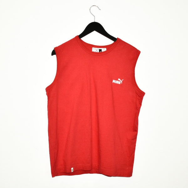 Vintage Puma sleeveless t-shirt top blouse tee in eed. Unisex. Same/Next day postage, instant buy is on! Great condition. Has a logo on the front. Label says L, we recommend L.