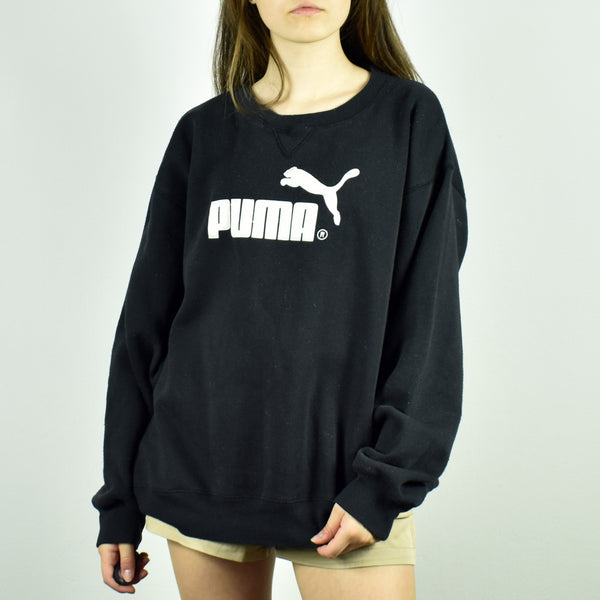Vintage Puma sweatshirt hoodie jumper sweater pullover in black. Unisex. Same/Next day postage, instant buy is on! Very good condition. Has a big logo on the front. Size S/M best fitting. Model is 163cm/5ft4. Please message with any questions 👌